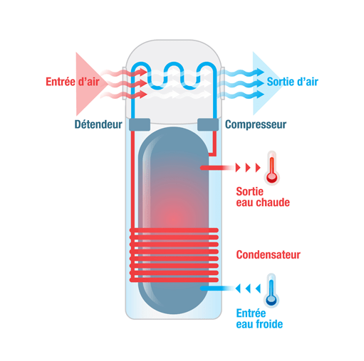 Le ballon d’eau chaude thermodynamique repose sur le même principe de fonctionnement qu’une pompe à chaleur